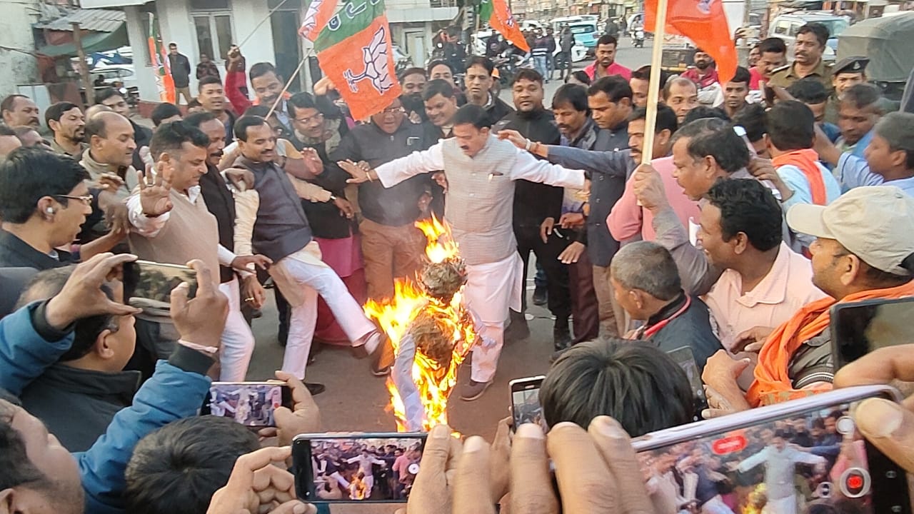 उपराष्ट्रपति के मिमिक्री विवाद को लेकर कोरबा में भाजपाईयों ने किया राहुल का पुतला पुतला दहन