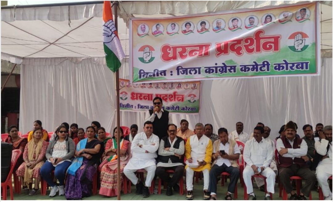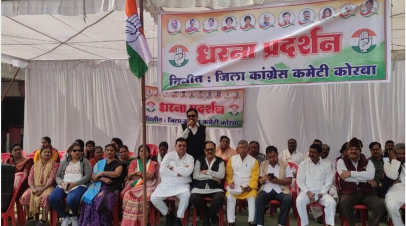 इंडिया गठबंधन के 146 सांसदों के निलंबन के फैसले पर जिला कांग्रेस कमेटी कोरबा के द्वारा एक दिवसीय धरना प्रदर्शन किया गया
