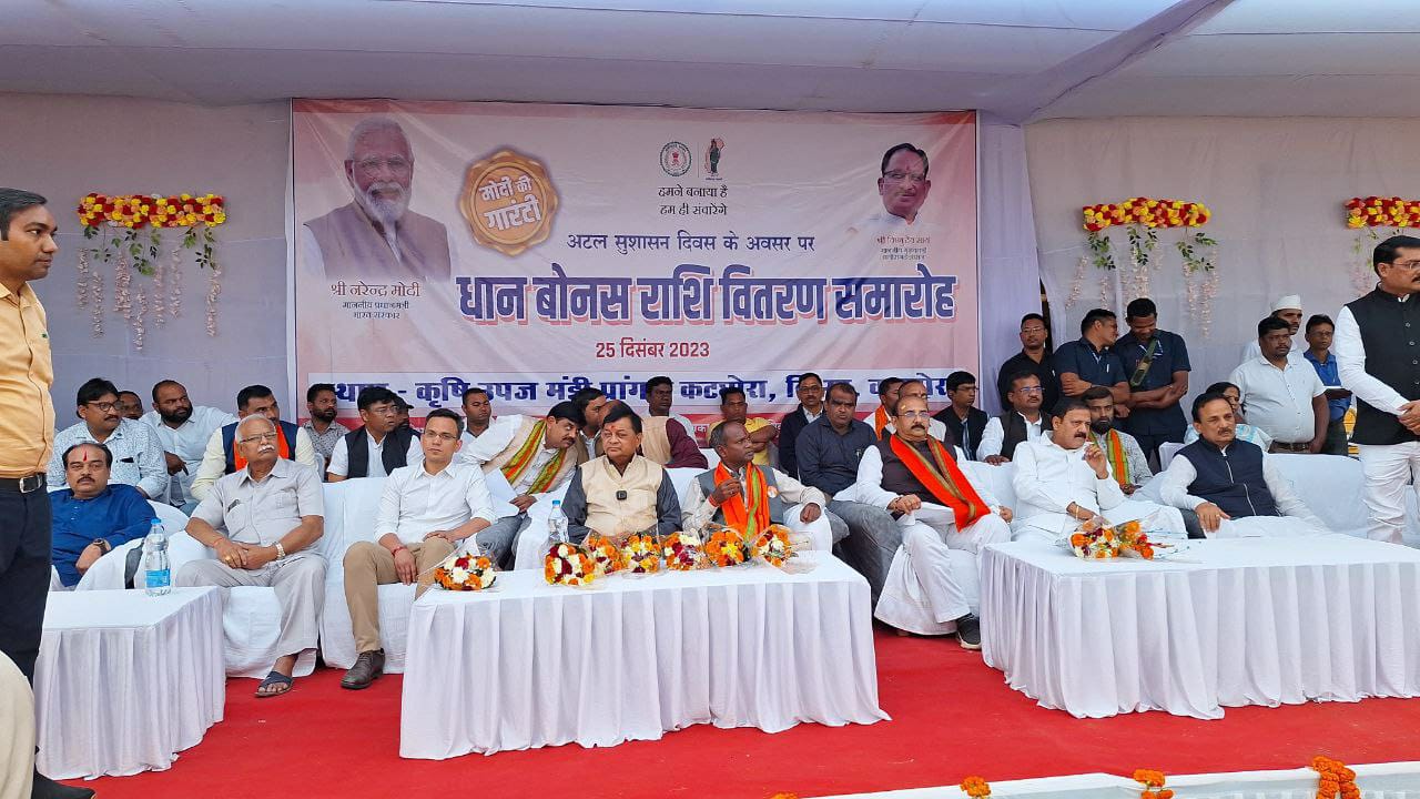 कार्यक्रम में मुख्य अतिथि देवांगन सहित अन्य जनप्रतिनिधियों एवं अधिकारियों ने पूर्व प्रधानमंत्री भारत रत्न अटल बिहारी बाजपेयी की छाया चित्र पर माल्यार्पण एवं दीप प्रज्जवलन कर उनके योगदान को स्मरण किया। कैबिनेट मंत्री लखन लाल देवांगन ने कार्यक्रम को संबोधित करते हुए कहा कि आज ऐतिहासिक दिन है। भारत रत्न पूर्व प्रधानमंत्री एवं छत्तीसगढ़ राज्य के निर्माता स्व. अटल बिहारी वाजपेयी के जन्मदिन सुशासन दिवस के अवसर पर प्रधानमंत्री नरेन्द्र मोदी की घोषणानुरूप आज मुख्यमंत्री विष्णु देव साय के द्वारा किसानों को धान के बकाया बोनस राशि का वितरण किया गया। उन्होंने सभी किसानों को बधाई एवं शुभकामनाएं देते हुए कहा कि प्रधानमंत्री मोदी की गारंटी के तहत किये गए सारे वादे आने वाले सालों में पूरे किए जाएंगे। यह प्रधानमंत्री की सकारात्मक सोच का सार्थक परिणाम है कि अन्नदाता किसानों को उनकी मेहनत का प्रतिफल आज दिया जा रहा है। साथ ही 3100 रुपये समर्थन मूल्य पर 21 क्विन्टल प्रति एकड़ की दर से धान खरीदी की जाएगी। देवांगन ने देश सहित प्रदेश के विकास में सुशासन की उपयोगिता समझाते हुए जिले वासियों से सुशासन संकल्प को अपने जीवन मे अपनाकर जिले के समृद्धि एवं विकास में अपना सहयोग प्रदान करने का आग्रह किया।