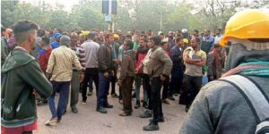 छंटनी के खिलाफ आक्रोशित एनटीपीसी के ठेका कामगारों ने किया प्रदर्शन