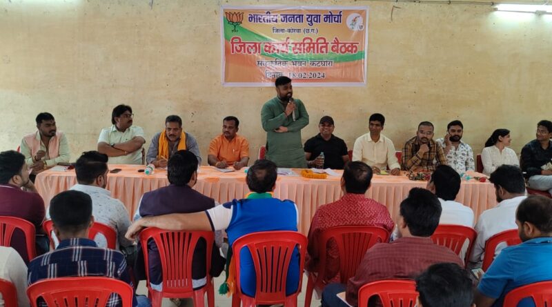 कोरबा/कटघोरा- आगामी लोकसभा चुनाव के मद्देनजर भारतीय जनता पार्टी में बैठकों का दौर चल रहा है एक तरफ जहां भाजपा की राष्ट्रीय अधिवेशन दिल्ली में चल रही है तो वहीं पार्टी के युवा मोर्चा की बैठकों का दौर राष्ट्रीय,प्रदेश और जिला स्तर पर जारी है।