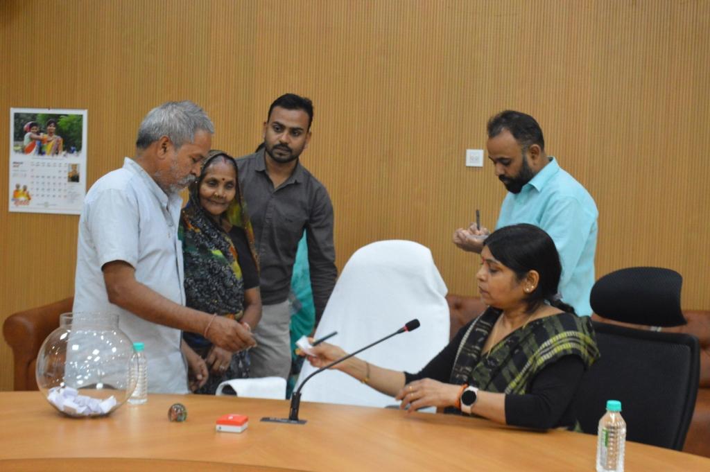 कलेक्ट्रेट सभाकक्ष में रामलला दर्शन योजना अंतर्गत पात्र तीर्थ यात्रियों की पर्ची लॉटरी पद्धति से निकाली गई। ग्रामीण क्षेत्रों से कुल 272 लोगों ने और शहरी क्षेत्र से 55 लोगों ने आवेदन किया था। जिसमें ग्रामीण क्षेत्र से 110 और शहरी क्षेत्र से 36 का चयन रामलला दर्शन योजना के लिए किया गया है। कलेक्टर अजीत वसंत ने तीर्थ यात्रियों के चयन के दौरान पारदर्शिता अपनाते हुए नियमों का पालन करने के निर्देश दिए। संपूर्ण प्रक्रिया की वीडियोग्राफी भी कराई गई है। समाज कल्याण विभाग की उप संचालक सिनीवाली गोयल ने बताया कि रामलला दर्शन योजना के लिए चयनित तीर्थ यात्रियों को आगामी दो दिवस 08 मार्च तक चिकित्सा प्रमाण पत्र जमा करना होगा। चयनित तीर्थ यात्रियों द्वारा पूर्व में जहां आवेदन किया गया था वहां चिकित्सा प्रमाण पत्र जमा करना होगा। उन्होंने बताया कि ग्रामीण क्षेत्र से 27 और शहरी क्षेत्र से 10 का नाम प्रतीक्षा सूची में रखा गया है। चयनित तीर्थ यात्री द्वारा अयोध्या नहीं जाने पर प्रतीक्षा सूची में शामिल लोगों का चयन किया जाएगा।