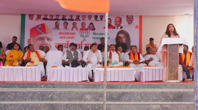 वंही सभा को सम्बोधित कर छत्तीसगढ़ शासन के स्वास्थ्य मंत्री रहे श्याम बिहारी जायसवाल जी ने अपने उधबोधन में कहा कि आज हमारे घर गांव में ऐतिहासिक दिन है और जब-जब हमने इस ग्राउंड में कार्यक्रम किया तब तक भाजपा की जीत हासिल होती है इसका मुख्य कारण है मां महामाया जी की कृपा ऐसी राष्ट्र नेतृत्व के नेत्री का चुनाव लड़ना हमारे लिए और कोरबा लोकसभा के लिए गर्व की बात है आज कार्यकर्ता सम्मेलन में सभी का हृदय से अभिनंदन और स्वागत करता हूं उन्होंने कहा कि आप वोटर नहीं है मैं सबको पहचानता हूं और हम मोदी के परिवार में आपका आशीर्वाद से 12000 हजार के रिकॉर्ड मतों से हमने जीता और इस बार भी हम यह उम्मीद करते हैं कि 50000 वोटो का लीडर है श्याम बिहारी ने बताया कि हमने एक वोट श्री विष्णु देव जी की सरकार में किसान के धान की कीमत को लेकर थी वहीं कांग्रेस सरकार किस्तों पर तड़पा – तड़पा कर किसानों के मेहनत का पैसा देती थी जो बहुत ही निंदनीय था, उन्होंने कहा कि विधानसभा चुनाव के दौरान हमारे माता और बहनों को जिन्होंने घर-घर जाकर सरकार की महतारी वंदना योजना के बारे में बताना चाहा तो कांग्रेस ही है जो अपनी पुलिस का रौब दिखा उनके पीछे लगा दी और हमारी माताए और बहाने आडिग रही और मजबूती के साथ घर-घर जाकर सभी महिलाओं को महतारी वंदना योजना का फॉर्म भरवाया जिसका नतीजा यह रहा कि विष्णु देव की सरकार आते ही 3 महीने के अंदर उनके खाते में 1000 रुपय ट्रांसफर किया जा रहा , उन्होंने आगे अपने भाषण में कहा कि नागपुर से पराडोल वाला रेलवे लाइन के लिए पिछली बार हमने भूमि पूजन किया था लेकिन कांग्रेस की सरकार आते ही राज्य शासन की तरफ से किसी प्रकार का स्वीकृति नहीं दिया गया और वहां मामला अटका रहा पुनः हमारी सरकार बनते ही 241 करोड़ की स्वीकृति नागपुर से पाराडोल रेल लाइन के लिए दी जा चुकी और तथा मेडिकल कॉलेज के लिए कांग्रेस के लोग पत्थर और नारियल फोड़े थे लेकिन कांग्रेस की कभी मनसा ही नहीं थी कि वहां मेडिकल कॉलेज खुले लेकिन हमारी सरकार आते ही मनेंद्रगढ़ में मेडिकल कॉलेज 100 करोड़ की राशि की स्वीकृति मिली इकलौता हमारा खडगांवा है जो एग्रीकल्चर कॉलेज खोलने के लिए स्वीकृति मिल खडगांव को सामुदायिक स्वास्थ्य केंद्र के लिए 2•5 करोड रुपए की स्वीकृति मिली वहीं उन्होंने बताया कि जिला अस्पताल चिरमिरी में बनेगा मेडिकल कॉलेज भी मनेंन्द्रगढ में बनेगा 100 बेड का एमएचसीएच मनेंद्रगढ़ में बनने वाला और वंही मनेन्द्रगढ़ से साजा पहाड़ रोड के लिए 40 करोड रुपए की स्वीकृति मिली है तथा श्याम बिहारी जायसवाल ने बताया कि लोकसभा और राज्यसभा के नेतृत्व कर चुकी सरोज दीदी क्षेत्र का भाग्य उदय करने वाली है हमें सरोज दीदी का हाथ मजबूत करना है और माननीय नरेंद्र मोदी जी का हाथ को मज