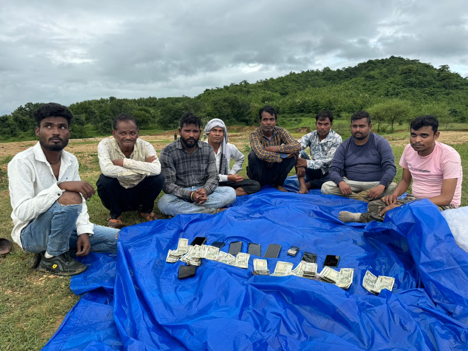 मुखबिर सूचना प्राप्त हुआ था कि गिधौरी पहरीपारा जंगल में कुछ लोग रुपये पैसों का दांव लगाकर 52 पत्ती ताश जुआ खेल रहे हैं, उक्त सूचना को तत्काल संज्ञान में लेते हुए वरिष्ठ अधिकारियों के मार्गदर्शन में टीम गठित कर गिधौरी पहरीपारा जंगल में पहाड़ी के ऊपर जुआ फड़ में रेड की कार्यवाही की गई, पुलिस को देखकर जुआरी भागने लगे जिन्हें दौड़ाकर पुलिस टीम द्वारा 8 जुआरियों को पकड़ने में सफलता मिली है। जुआ फड़ से नगदी रक़म 62500.00 एवं 8 नग मोबाइल जुमला क़ीमती 150000.00 (एक लाख पचास हज़ार रू) को बरामद कर जप्त किया गया है। अन्य जुआरी जो पुलिस टीम को देखकर भागे है, उनका पता तलाश किया जा रहा है। उरगा पुलिस की असामाजिक तत्वों पर कार्यवाही लगातार जारी रहेगी।