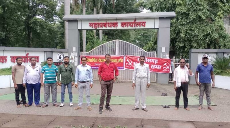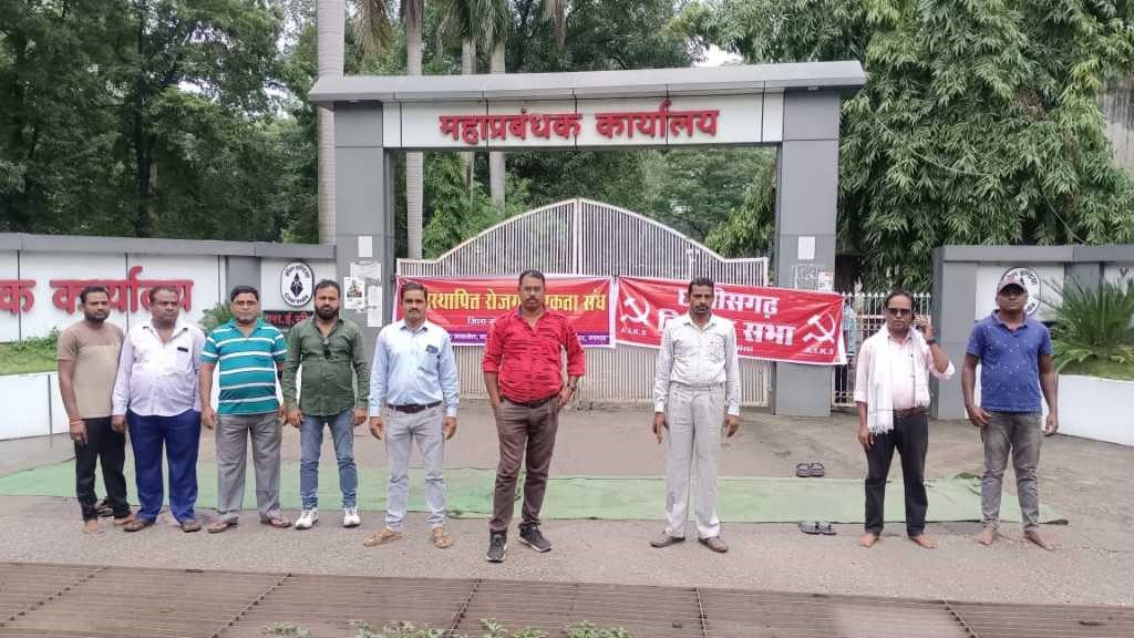 कोरबा :- सार्वजनिक क्षेत्र के वृहद उपक्रम कोल् इंडिया के अधीन संचालित एसईसीएल बिलासपुर की कोरबा-पश्चिम क्षेत्र में स्थापित खुले मुहाने की गेवरा कोयला परियोजना अंतर्गत एसईसीएल की मेगा परियोजना कुसमुंडा में छत्तीसगढ़ किसान सभा और रोजगार एकता संघ ने एसईसीएल के खदानों से प्रभावित भू-विस्थापित किसानों की लंबित रोजगार प्रकरणों का तत्काल निराकरण की मांग को लेकर महाप्रबंधक कार्यालय में तालाबंदी आंदोलन शुरू कर दिया है। प्रदर्शनकारियों ने कार्यालय में धरना दे अपनी मांगों को पूरा करने मांग कर रहे हैं।