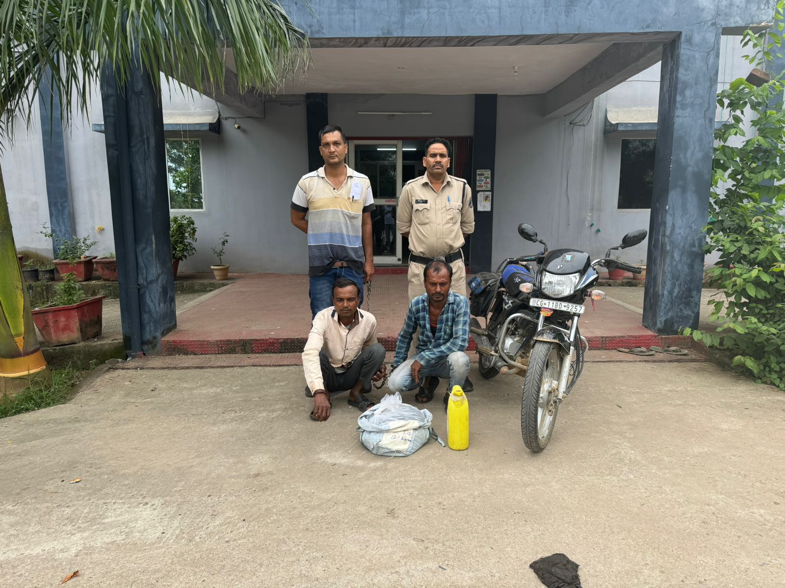 मुखबीर से सूचना के अधार पर कुरुडीह उरगा में महुआ शराब बिक्री करने वाले चंद्रकुमार कश्यप एवं भजन लाल कश्यप के क़ब्ज़े से 13 लीटर देशी महुआ शराब एवं मोटर सायकल को जप्त कर धारा 34(2) आबकारी अधिनियम के तहत अपराध पंजीबद्ध कर आरोपी को न्यायिक रिमांड में भेज दिया गया है।