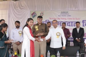कलेक्टर ने कार्यक्रम को सम्बोधित करते हुए कहा कि लोकतंत्र को मजबूत बनाने के लिए सभी मतदाताओं को अपने लोकतांत्रिक कर्तव्यों का पालन करते हुए अनिवार्य रूप से मतदान करना चाहिए। लोकतंत्र हमें अवसर प्रदान करता है प्रतिभा के आधार पर योग्य प्रत्याशी को विजयी बनाने का। इस हेतु आप सभी प्रतिभा को महत्व दें , किसी प्रकार की भय, लोभ, प्रलोभन, धर्म, जाति, वर्ग, समुदाय से परे होकर उचित प्रत्याशी को मतदान करें। कलेक्टर ने कहा कि यह नगर व गांव की सरकार चुनने का वर्ष है इसे देखते हुए भी मतदाताओं को जागरूक करने के लिए स्वीप गतिविधियों के माध्यम से विभिन्न एक्टिविटी की जा रही है। स्कूल कालेजों में रंगोली प्रतियोगिता, नारा, स्लोगन, भाषण, निबंध लेखन, पेंटिंग, चित्रकला, वाद विवाद जैसे अन्य क्रियाकलाप आयोजित किया जा रहा है साथ ही शहरी व ग्रामीण क्षेत्रो में दीवार लेखन, नुक्कड़ नाटक, सांस्कृतिक कार्यक्रम के माध्यम से अधिक से अधिक मतदाताओं को मतदान में भागीदारी के लिए प्रोत्साहित किया जा रहा है। उन्होंने नवमतदाताओं को लोकतंत्र के पावन पर्व में अपनी सक्रिय भूमिका निभाने हेतु प्रोत्साहित किया।