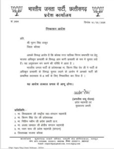 कोरबा :- छत्तीसगढ़ बीजेपी ने अनुशासनहीनता के मामले में बड़ी कार्रवाई करते हुए कोरबा नगर निगम के नवनिर्वाचित सभापति को पार्टी से 6 वर्षों के लिए निष्कासित कर दिया है। कोरबा में नूतन सिंह ठाकुर पार्टी के सभापति के अधिकृत प्रत्याशी के खिलाफ चुनाव लड़े थे। और उन्हें जीत मिली थी।